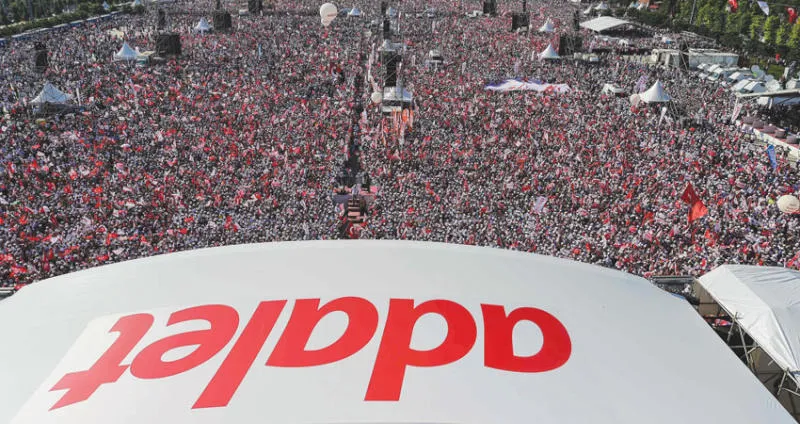 تجمع نحو مليوني شخص بالقرب من سجن مالتبه في إسطنبول أمس استجابة لنداء رئيس حزب الشعب الجمهوري زعيم المعارضة التركية كمال كليتشدار أوغلو، في ختام مسيرة «العدالة» التي استمرت 25 يوما منذ انطلاقها من العاصمة أنقرة سيرا على الأقدام في 15 يونيو (حزيران) الماضي.