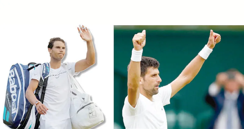 ديوكوفيتش يحتفل بانتصاره على الفرنسي مانارينو (إ.ب.أ) - نادال يودع جماهير ويمبلدون مغادراً (رويترز)
