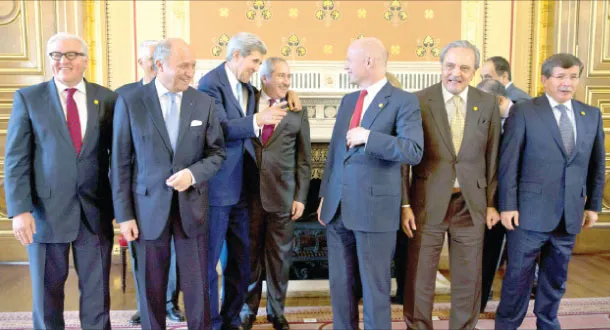 واجتمع وزراء الدول الـ11 لمدة ساعتين على حدة، قبل انضمام الجربا وطعمة لهم لمدة ساعتين إضافيتين. ومن الجانب العربي، حضر وزير الخارجية السعودي الأمير سعود الفيصل المؤتمر بالإضافة إلى وزير الخارجية الأردني ناصر جودة، ووزير الخارجية القطري خالد العطية، بينما مثل مصر نائب وزير الخارجية المصري حمدي لوزة، ومثل الإمارات وزير الدولة للشؤون الخارجية أنور محمد غرغاش.