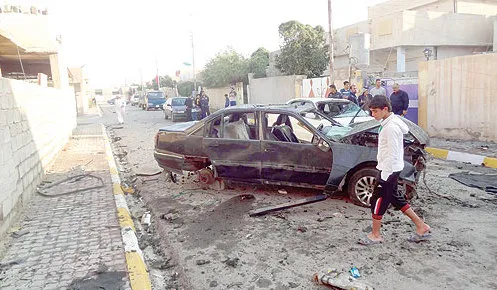 عراقي يتفحص سيارة انفجرت في حي سكني وسط مدينة كركوك التي تضم سنة من العرب والتركمان والأكراد (أ.ف.ب)