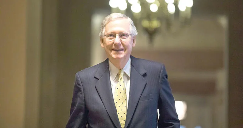 السيناتور ميتش ماكونيل زعيم الأغلبية الجمهورية يعلن فشله في جلب الأصوات الكافية لتمرير المشروع ليبقى العمل بـ«أوباماكير» قائماً حتى وقت لاحق (إ.ب.أ)