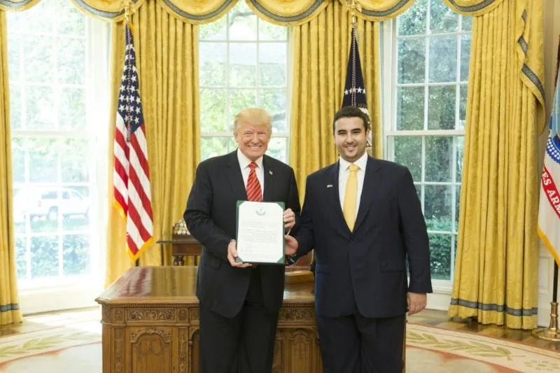 استقبل الرئيس الأميركي دونالد ترمب رئيس الولايات المتحدة الأميركية في البيت الأبيض أمس (الجمعة)، الأمير خالد بن سلمان بن عبد العزيز سفير خادم الحرمين الشريفين لدى الولايات المتحدة الأميركية الذي سلم أوراق اعتماده سفيراً لخادم الحرمين الشريفين لدى الولايات المتحدة الأميركية.