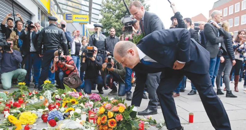 وزار أولاف شولتس رئيس حكومة ولاية هامبورغ (العمدة) واندي غروته وزير داخلية الولاية، موقع هجوم الطعن الذي وقع أول من أمس في متجر بالمدينة. وقال شولتس: «من المؤثر جدا مشاهدة مكان الجريمة والحديث مع هؤلاء الذين كانوا موجودين وشهدوا كل ذلك أو قدموا المساعدة أو جروا خلف الجاني». كان شولتس قد وضع زهرة في وقت سابق أمام المتجر الذي وقع الهجوم عنده، وتحدث مع شهود عيان. وقال: إن أهل هامبورغ لن ينسوا هذه الجريمة «فهذه لحظة مؤلمة للغاية بالنسبة لنا جميعا»، وأضاف أنه «فخور بأهل هامبورغ الذين سارعوا بتقديم العون».