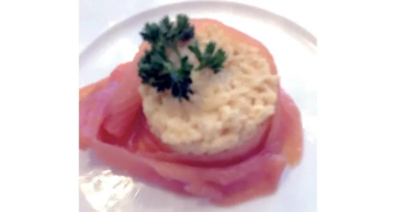 * التقييم: ***** (5 نجوم) * اسم الطبق: سلمون مع البيض Salmon with eggs * أين: غيم بيرد - فندق ذا ستافورد لندن Game Bird at the Stafford hotel * المذاق: يظن البعض أن الفطور الذي يحوي على البيض المقلي والسلمون، هو طبق بسيط يمكن الحصول عليه في أي مطعم، ولكن في الحقيقة إذا لم تكن النوعية جيدة فلن يكون المذاق بنفس الجودة، وهذا ما يجعل «غيم بيرد» من بين أفضل الأماكن التي تقدم السلمون لأن النوعية لا تضاهى كما أن طريقة التقديم جميلة جدا. * العنوان: The Stafford London، 16 - 18 St James Place، London SW1A 1NJ