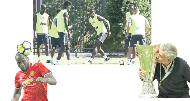 فوز مورينيو بالدوري الأوروبي أهّله لدوري الأبطال («الشرق الأوسط») - بوغبا في إحدى الحصص التدريبية خلال جولة يونايتد في الولايات المتحدة - تعاقد مورينيو مع لوكاكو أسعده (أ.ف.ب)