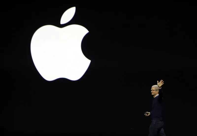 تيم كوك الرئيس التنفيذي لشركة آبل يتحدث خلال مؤتمر للمطورين (أ.ب)