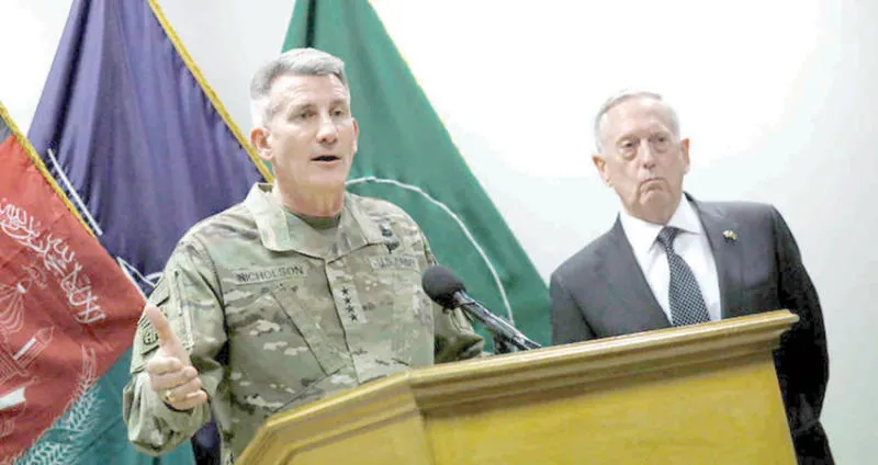 جيمس ماتيس وزير الدفاع الأميركي والجنرال جون نيكلسون قائد القوات الأميركية في أفغانستان («الشرق الأوسط»)