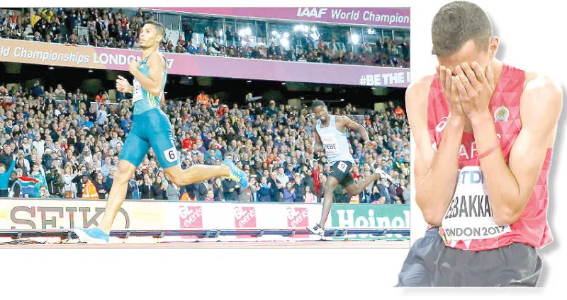 قطع الجنوب أفريقي وايد فان نيكرك أول خطوة على طريق تحقيق الثنائية بتتويجه بذهبية سباق «400 متر» وانتظار سباق «200 متر» في اليوم ما قبل الأخير لبطولة العالم لألعاب القوى المقامة في لندن حتى 13 أغسطس (آب) الحالي، فيما حقق الفرنسي بيار إمبرواز بوس فوزا مفاجئا في سباق «800 متر».