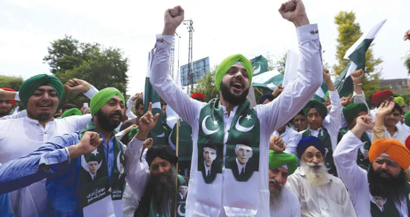 أفراد من السيخ يحتفلون بذكرى استقلال باكستان في بيشاور أمس (إ.ب.أ)