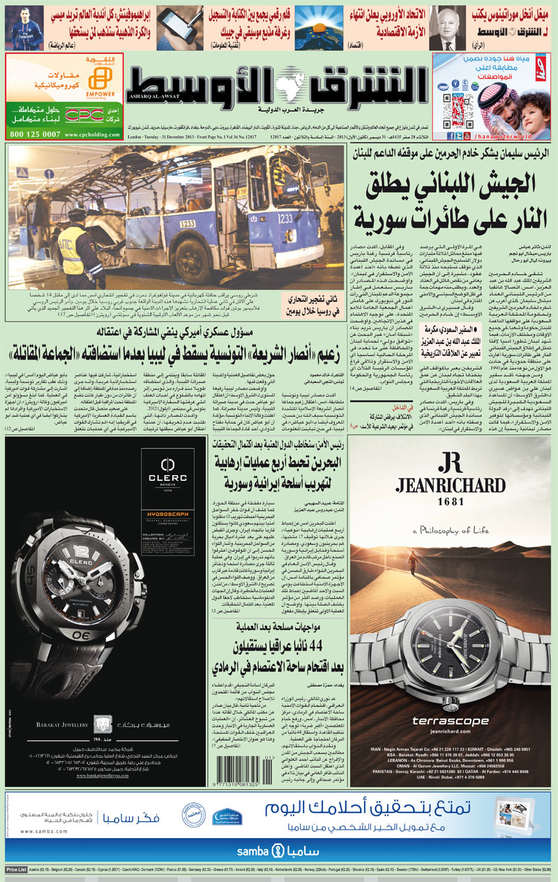 Cover Photo تاريخ النشر - Publish Date ثلاثاء, 12/31/2013 - 23:12 Editions الطبعة الدولية Issue Number 12817