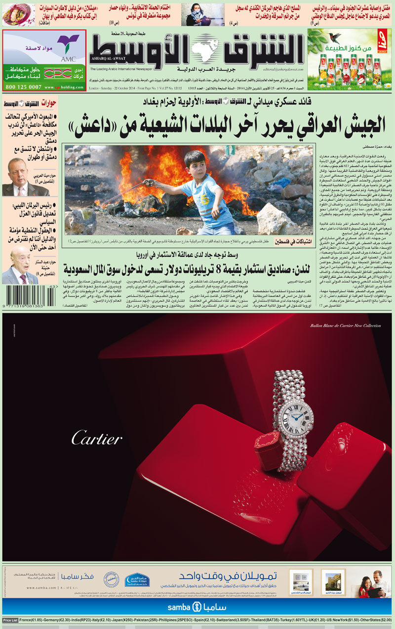 Cover Photo تاريخ النشر - Publish Date Sat, 10/25/2014 - 01:10 Editions الطبعة السعودية Issue Number 13115