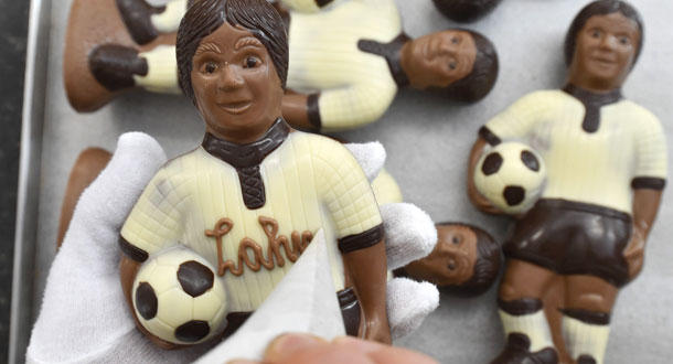 محل للوشكولاته يصنع مجسمات صغيرة للاعبي فريق كرة القدم الوطني استعدادا لفعاليات مونديال كأس العالم