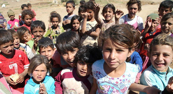لقطة لأطفال سوريين بمخيم اللاجئين الذي يقع بمقربة من مدينة بعلبك اللبنانية