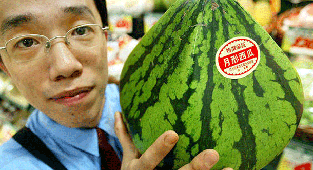 بطيخ بشكل هرم في اليابان يباع بمقدار 100 دولار أميركي للحبة