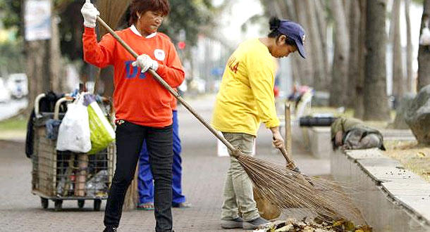 نساء فلبينيات يكنسن الشوارع وينظفنها عشية اليوم العالمي للمرأة في خليج مانيلا، بالفلبين