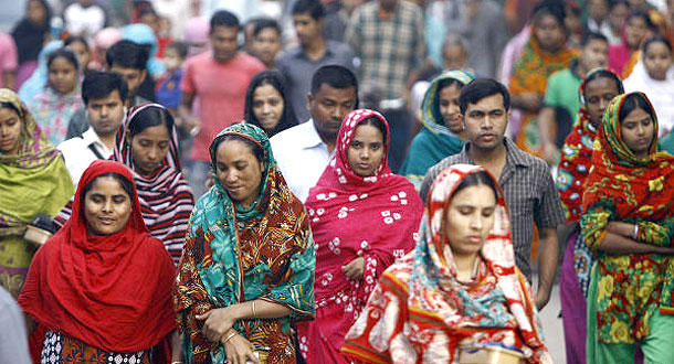 عمال مصانع الملابس يقبلون إلى العمل في بنغلادش