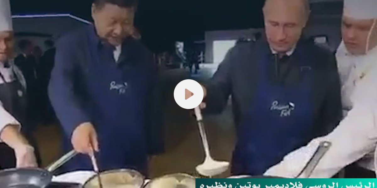 الرئيس الروسي فلاديمير بوتين ونظيره الصيني شي جين بينغ يعدان الفطائر الروسية "بليني"
