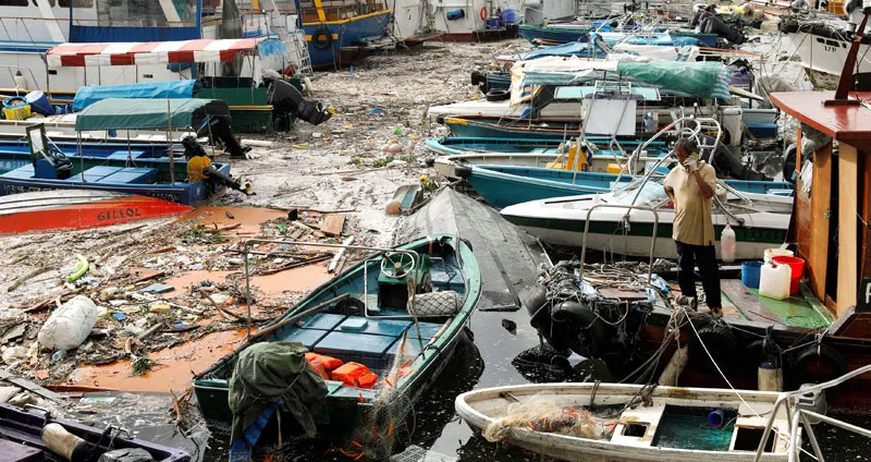 قوارب مدمرة بسبب إعصار مانغخوت في هونغ كونغ (رويترز)