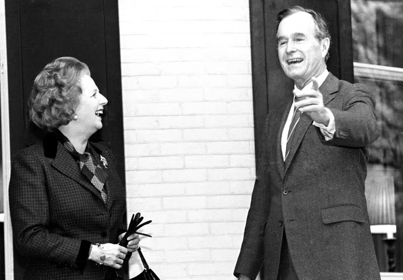 مع رئيسة الوزراء البريطانية الراحلة مارغريت ثاتشر في باريس (أ.ف.ب)