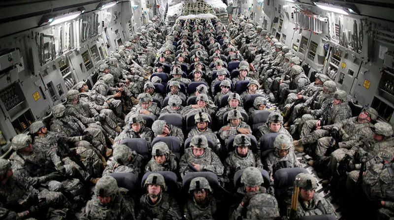 جنود أميركيون على متن طائرة توشك على الهبوط في مدينة مزار الشريف شمال أفغانستان، في أبريل (نيسان) 2010