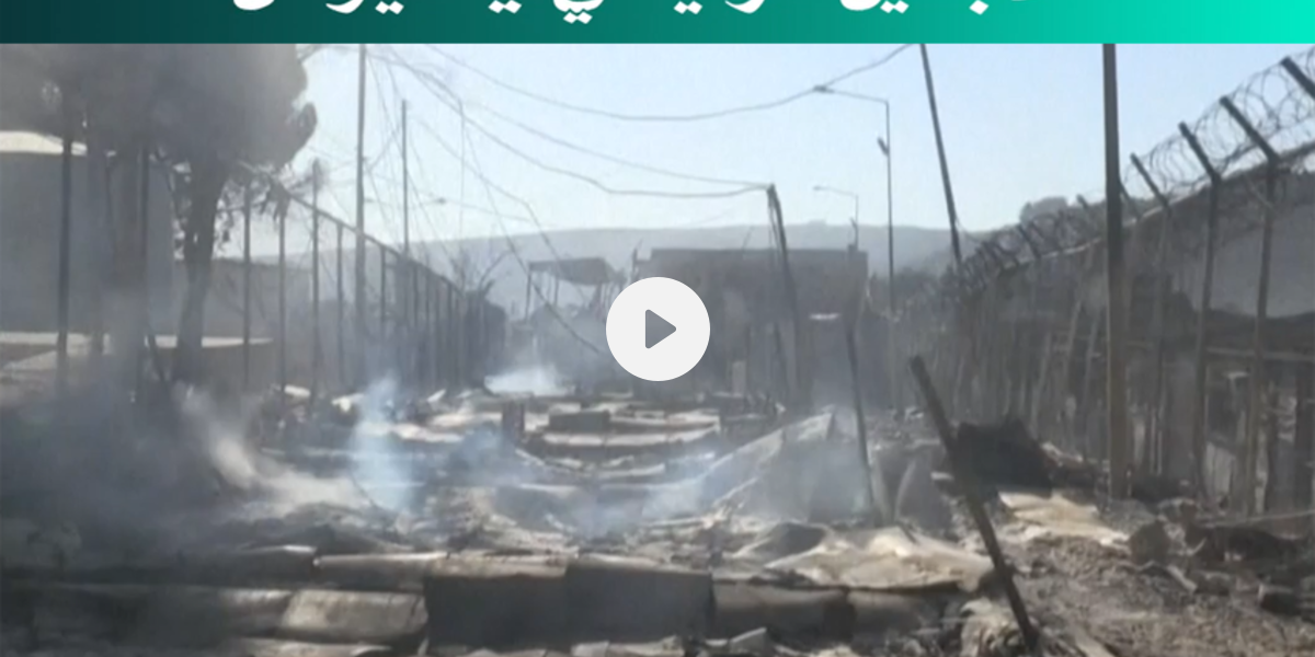 آثار الحريق الهائل الذي دمر مخيم اللاجئين الرئيسي في اليونان