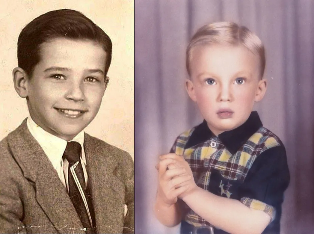 دونالد ترمب في الرابعة من عمره (يمين) وجو بايدن في العاشرة من عمره (تايم - أ.ب)