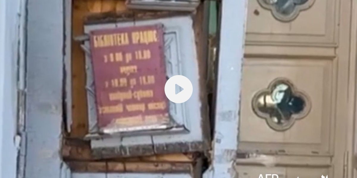 مكتبة مدمرة في تشرنيهيف جراء القصف الروسي