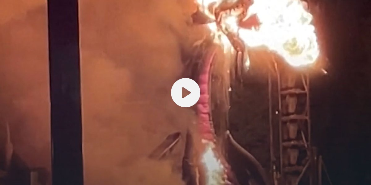 ألسنة اللهب تلتهم مجسم تنين ينفث ناراً في «ديزني لاند» بكاليفورنيا