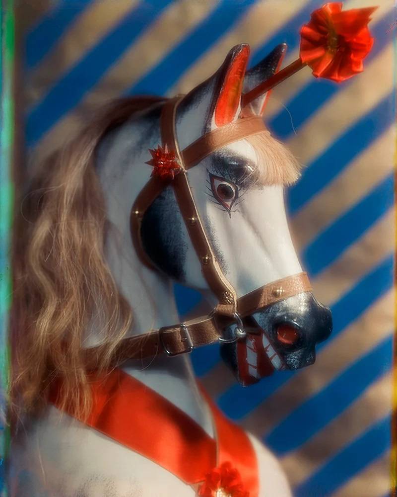 تظهر مارغريت سويني (دوقة أرغيل)، التي يزعمون أنها أكثر امرأة تم تصويرها في زمنها، مثل هيلين الطروادية ببشرتها التي تشبه الخزف، وخصلة شعر مموجة داكنة، وهي مغطاة بحجاب أزرق شفاف. كذلك هناك الليدي دوروثي كامبل، بوجهها الذي تحيط به مساحة محدودة، وتتألق عليه دموع تم إثارتها باستخدام الغليسرين، في إحالة إلى صورة «لارميس» السيريالية لمان راي، التي ظهرت قبلها بسنوات. شيلا ميلبانكي، والتي تنتمي إلى رواية «أشياء يافعة لامعة» (أو «أميرة روسية» لاحقاً) لإيفلين ووه، هي مثل بانثيسيليا، الملكة الأمازونية ذات الحظ المشؤوم، والتي ترتدي ملابس مكشوفة من جلد الفهد، ورأسها يميل إلى الوراء، وبينما يخترق عنقها، الذي تسقط عليه إضاءة قوية، سهم أخيل.