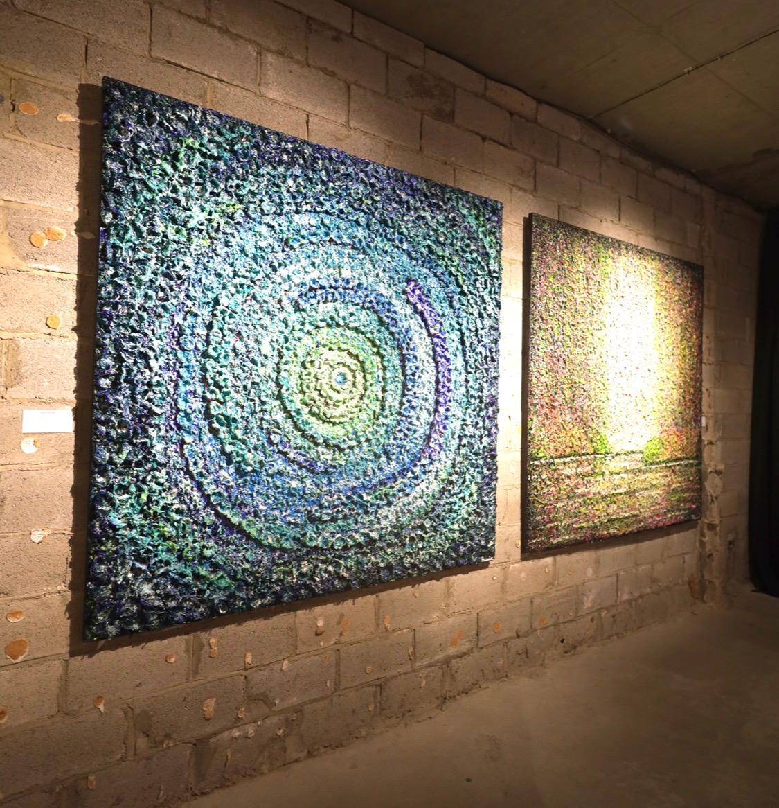 تكمل جولتك في المعرض لتستوقفك طبقات من مادة الأكريليك ذات أبعاد ثلاثية، تمثل نبض حياة عصرية وذاكرة بصرية مشبعة بالوجدانيات والحس الصادق.