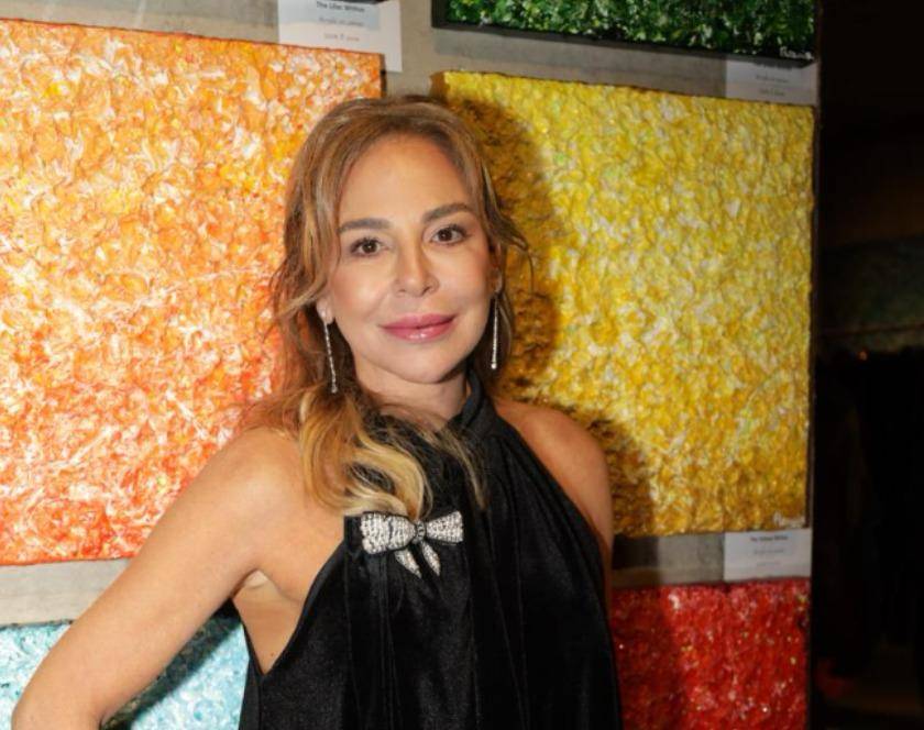 التشكيلية اللبنانية غادة جمّال أمام إحدى لوحاتها (الشرق الأوسط)