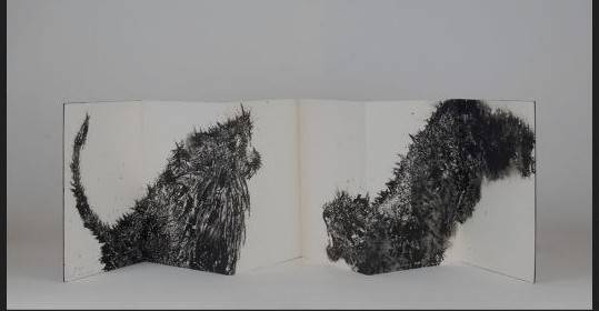 يقدّم الفنان الجزائري الفرنسي نصر الدين بن ناصر رؤية فنية أشبه بعدسة المجهر، تكشف منظوراً جديداً للعالم من حولنا. في كتابه الفني «صمت الليل»، الذي يشارك به في معرض «مدن تحت الحجر»، يبرز كائن أسود يمتد عبر صفحات الكتاب، تتوزع تفاصيله بين طرفين: أحدهما صورة مقربة لذيل وشعر أسود لجسد حيوان واضح المعالم، والآخر رأس حيوان مفترس ضبابي الملامح.