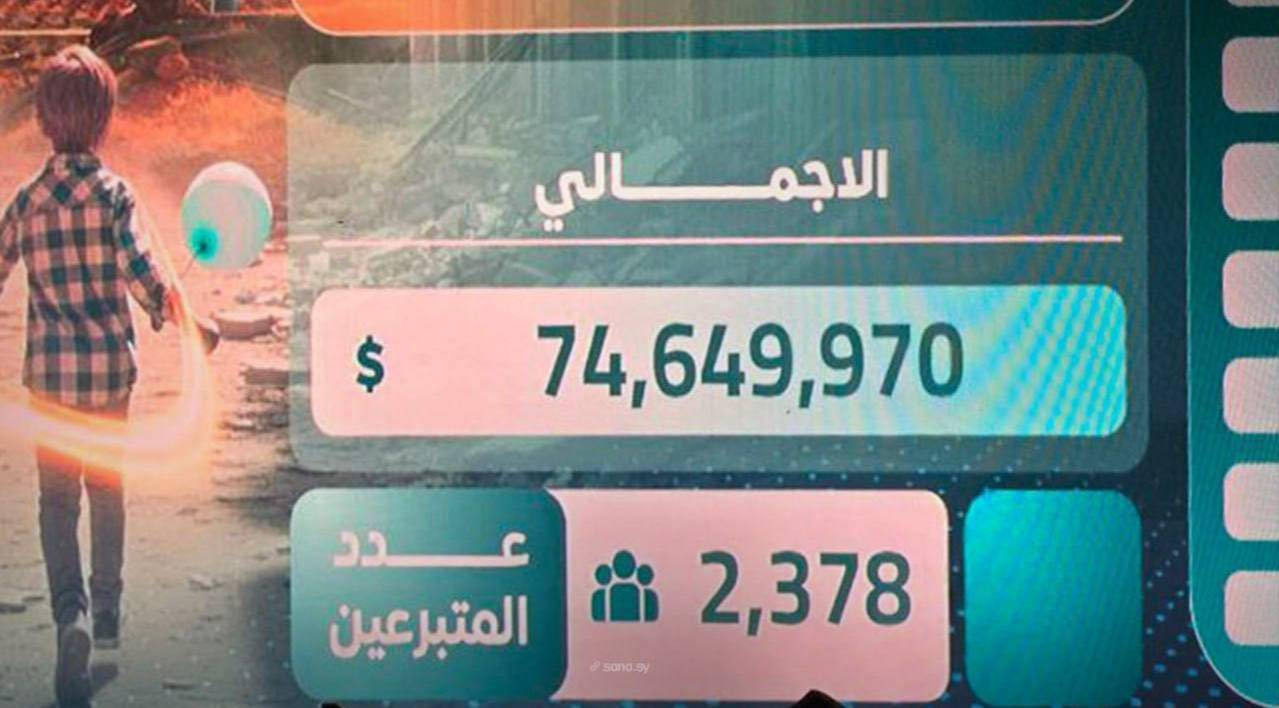 وحصدت محافظة ريف دمشق الرقم الأعلى بالتبرعات، ووصلت إلى 76 مليون دولار، قدمه نحو 2370 متبرعاً ضمن حملات التبرع التي تنظمها الحكومة بالتعاون مع الإدارات المحلية والمجتمع الأهلي، بهدف تأهيل الواقع الخدمي والبنى التحتية في المناطق المدمرة، والاستجابة لعودة المهجرين إلى مناطقهم المدمرة.