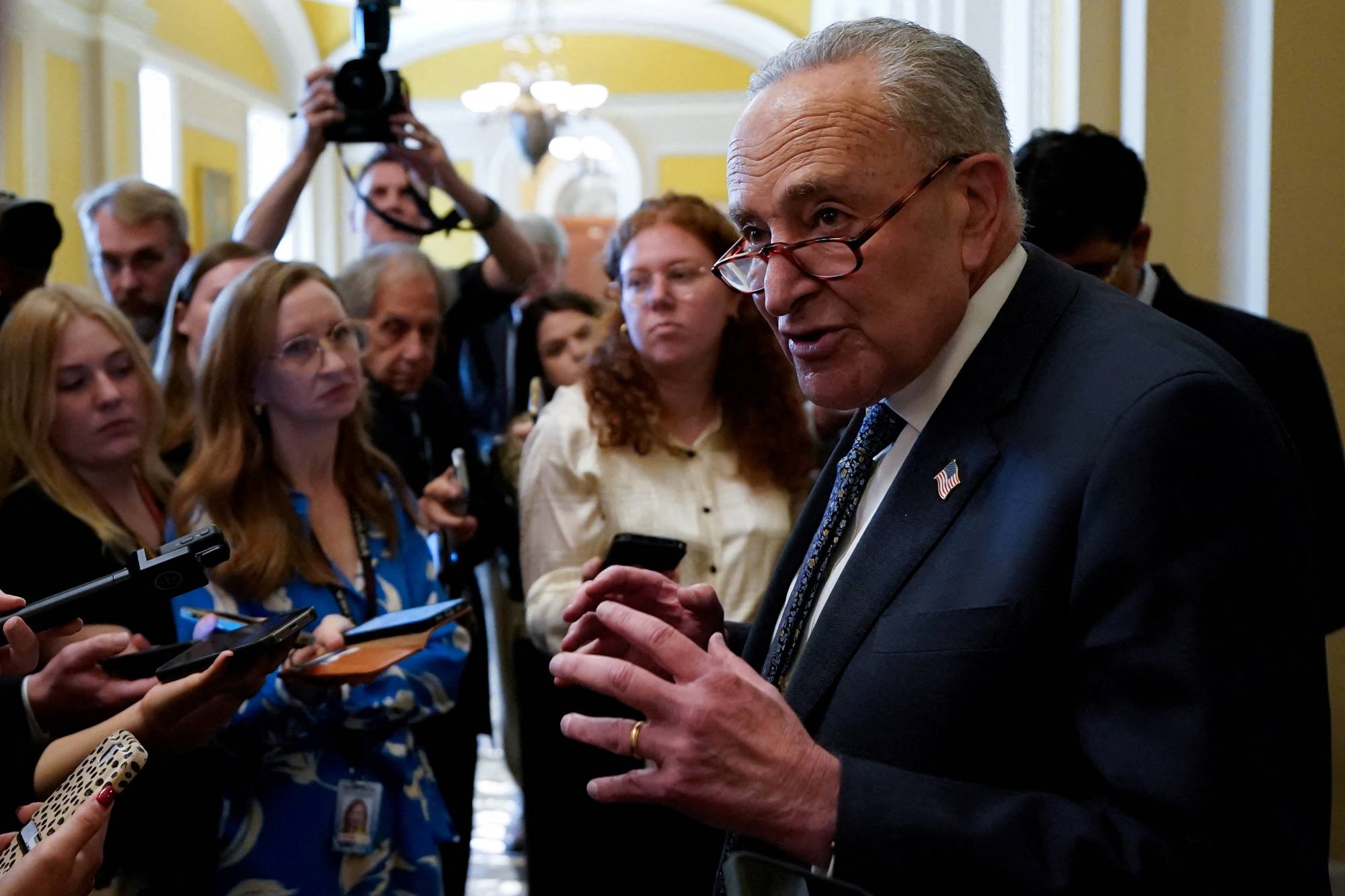 زعيم الأقلية في مجلس الشيوخ تشاك شومر يتحدث إلى الصحافيين في مبنى الكابيتول (رويترز)