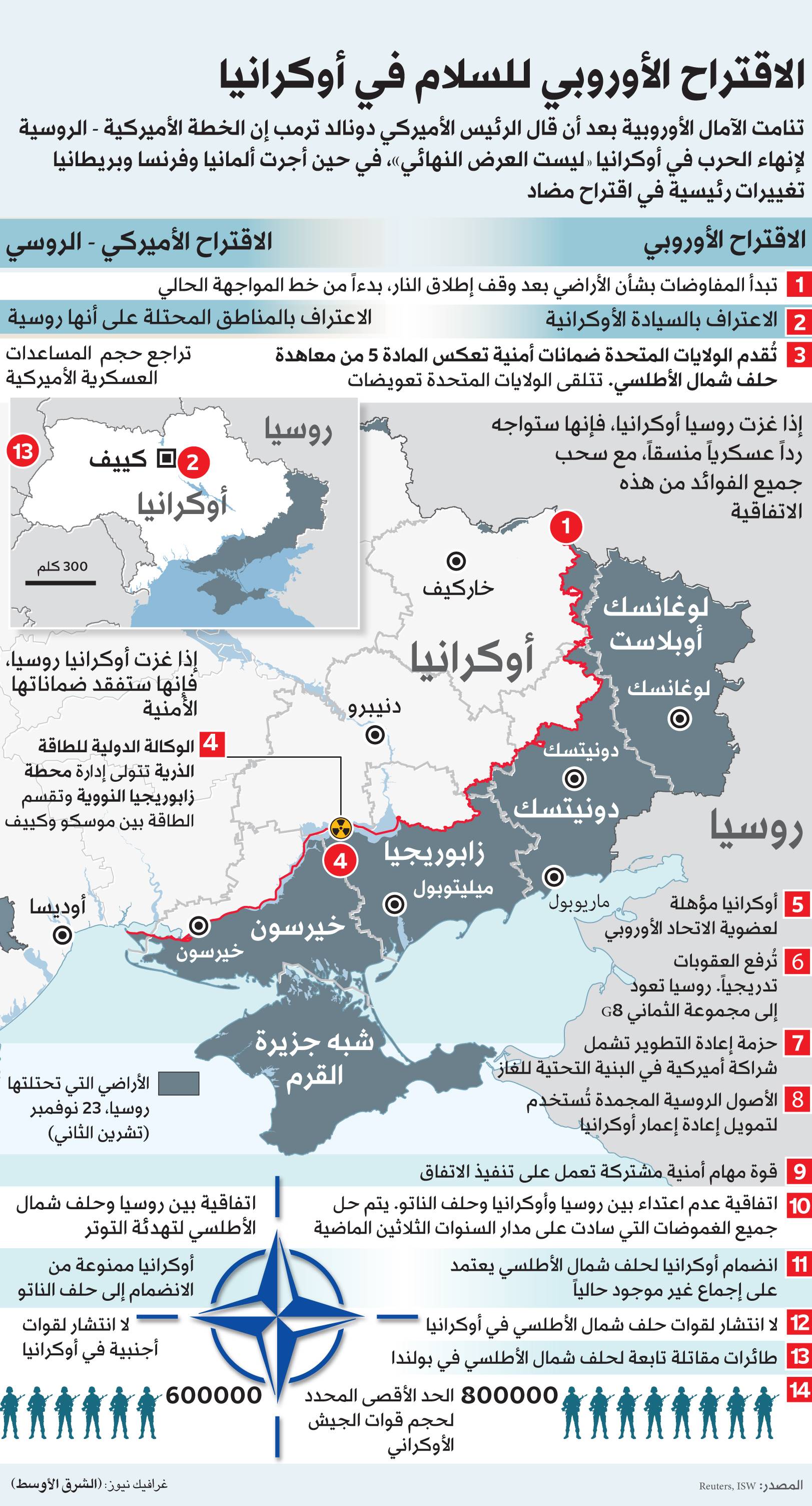 الرئيس الفرنسي إيمانويل ماكرون عبّر عن موقف متقدم حين قال إن الخطة الأميركية «تسير في الاتجاه الصحيح» لكنها «تحتاج إلى تحسينات». بالنسبة لماكرون، السلام مرغوب، لكن ليس «سلام الاستسلام»، والقرار بشأن الأرض «حق حصري للأوكرانيين».