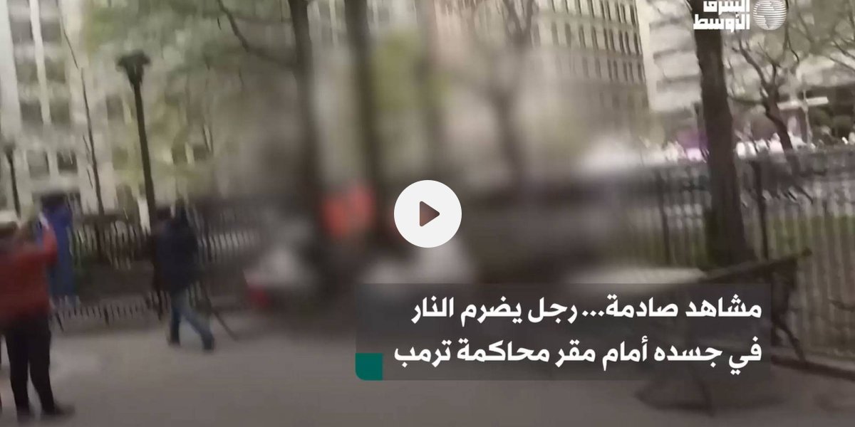 مشاهد صادمة... رجل يضرم النار في جسده أمام مقر محاكمة ترمب