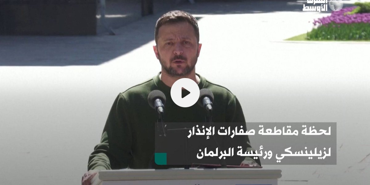 لحظة مقاطعة صفارات الإنذار لزيلينسكي ورئيسة البرلمان الأوروبي