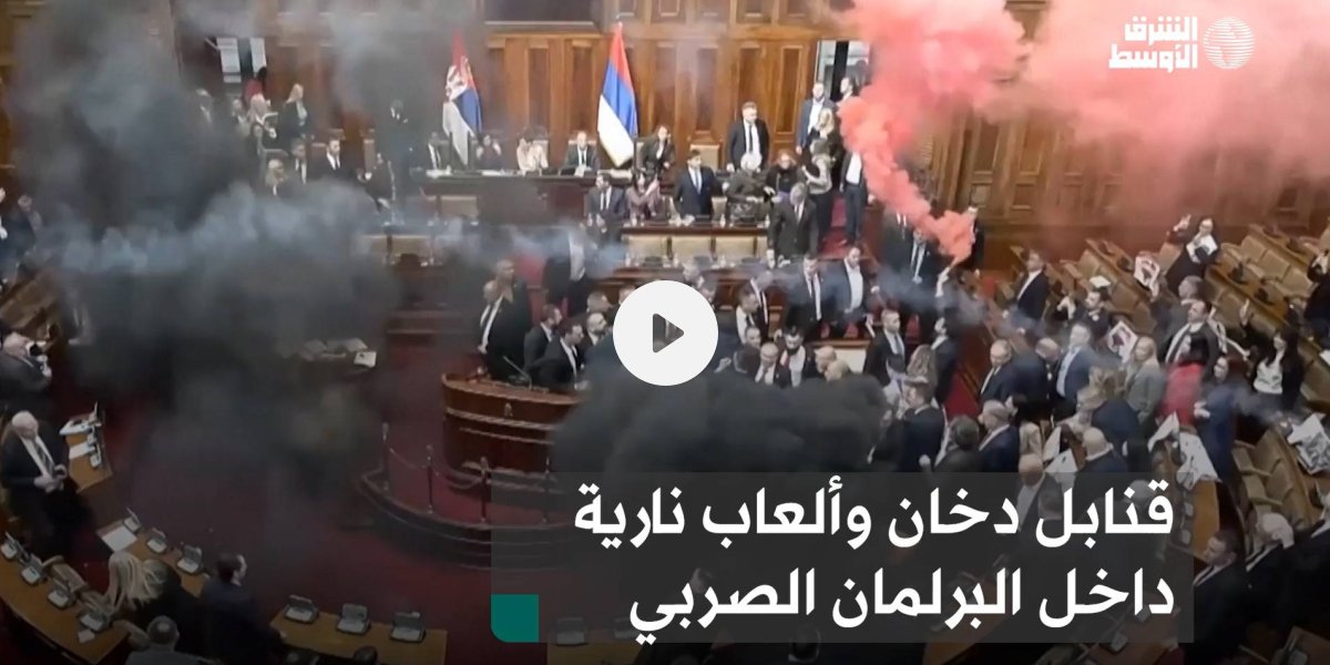 قنابل دخان وألعاب نارية داخل البرلمان الصربي