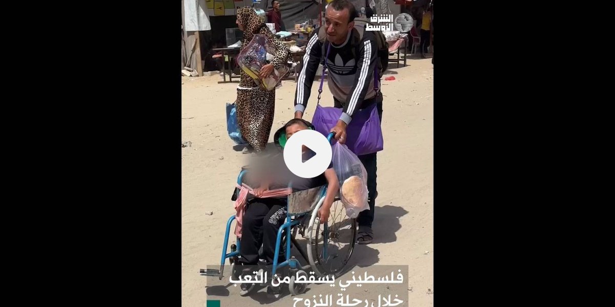 فلسطيني يسقط من التعب خلال رحلة النزوح