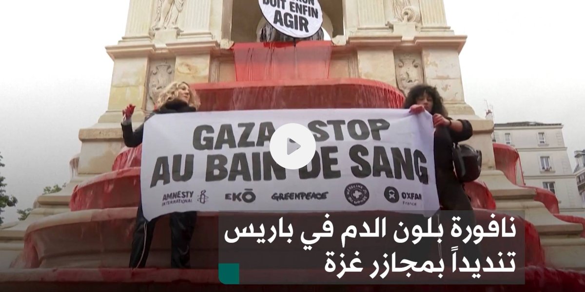 نافورة بلون الدم في باريس تنديداً بمجازر غزة