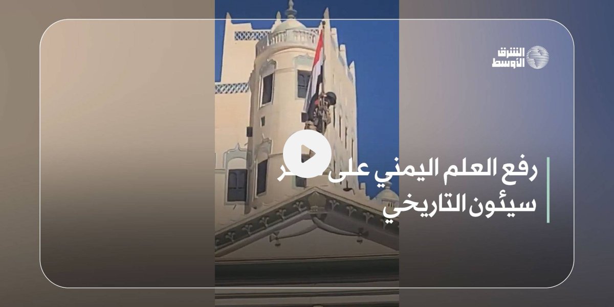 رفع العلم اليمني على قصر سيئون التاريخي